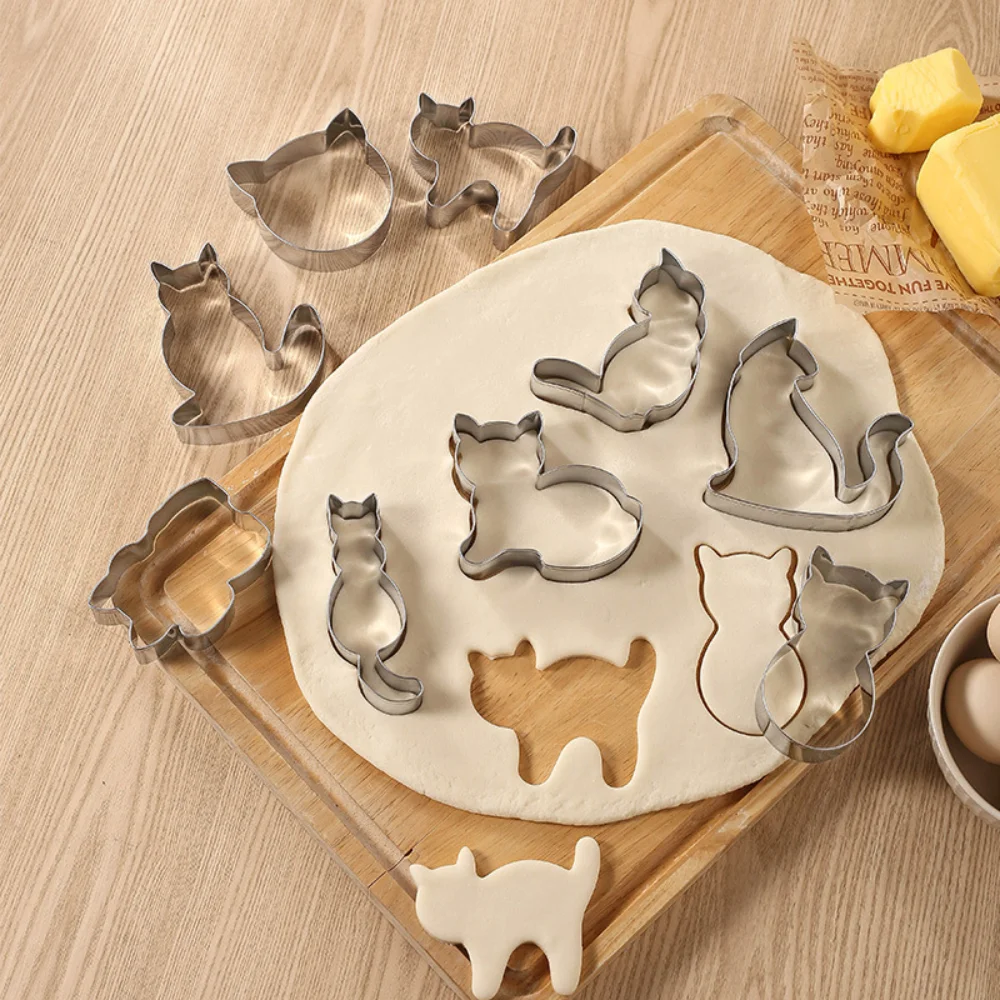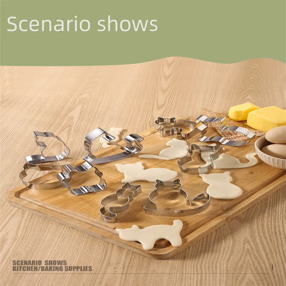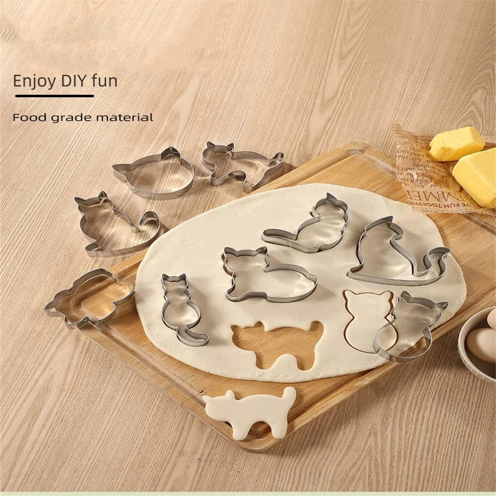 9pcs/Set Cartoon Cat Shape Pastry Biscuit Chocolate Mold Stainless Steel Mold Baking Supplies Fruit Cutting Molds